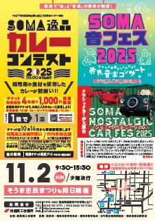 | SOMA逸品カレーコンテスト2025 SOMA音フェス2025 SOMAノスタルジックカーフェス2025 同時開催! ![]() 2025/11/2(日)9:30~15:30 相馬市中村田町商店街 路上